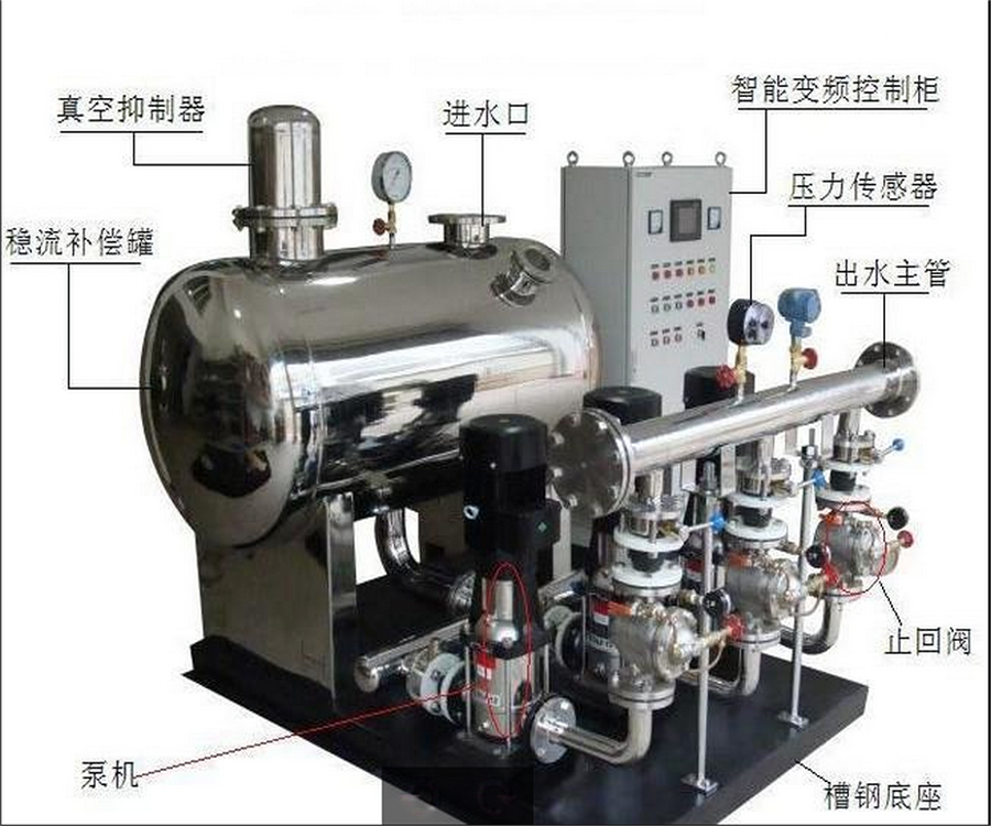 無負壓供水設備取代了蓄水池,充分利用了自來水管網壓力,直接或間接供水,減少了能源浪費,避免水的二次污染,大幅度節省了基建投資并縮短了施工工期。